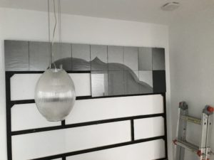 Inspired to experiment with large format printing, I decided to enlarge and hang a 54 frame installation of ‘passage’. In order to successfully align 54 frames on my 100 year old plaster wall, I quickly realized that I would need to build a custom wood frame that would be more forgiving if adjustments were needed (which they were). Designing, building, staining, and hanging the frame was a lot of fun and I though it would be appropirate for me share on this post.
