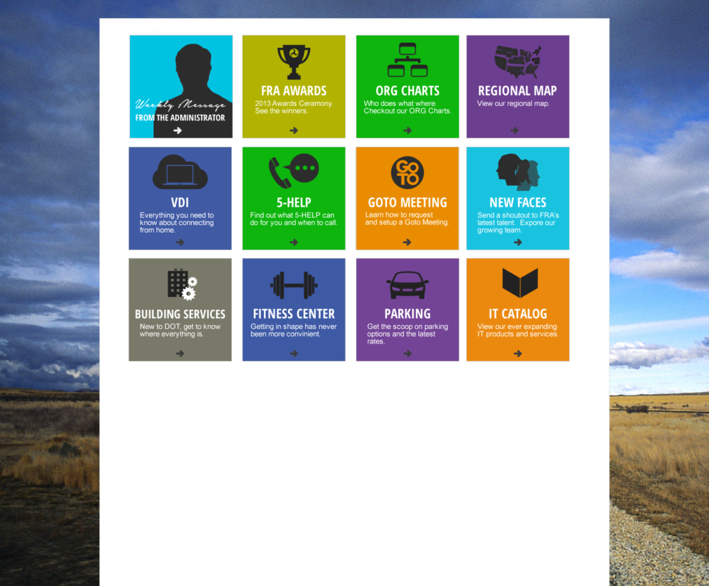 In an attempt to get things organized, our team created a custom DOT.NET application and migrated all the content from a dated SharePoint site that was used as an Intranet site rather than its intended use as a collaboration site. We created a unique look and feel but more importantly organized the content in a way that would be intuitive for the customer. The following slideshow showcases one of the design concepts and all the custom graphics and banners that were created for this job.