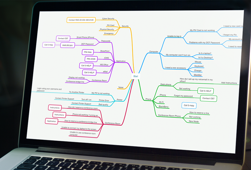 This interactive application was designed to help the Federal workforce find answers to IT related questions.